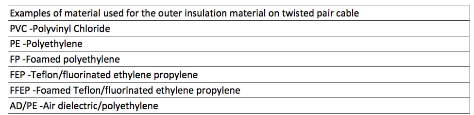Table 2: http://en.wikipedia.org/wiki/Twisted_pair